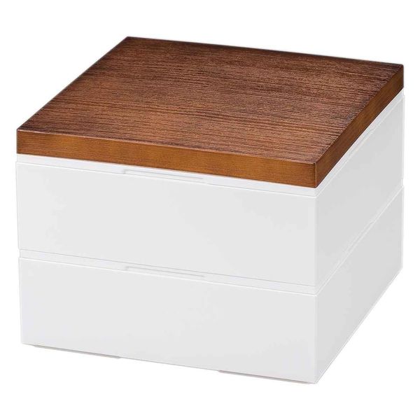 | 商品の特徴 | 木目調の蓋が印象的なシンプルなデザインの重箱です。 ホームパーティやピクニックなどでオードブルを盛り付けるのに便利です。 容量は2900mlと約3~4人で使用するのにぴったりです。 ※人数目安は1人あたり約800mlのお弁当箱を目安としています。 中子が4個付属しているので、おかずを分けて入れる事ができます。 各段にシール蓋が付いていて、容器の底や蓋に料理が直接付きません。 | ||
