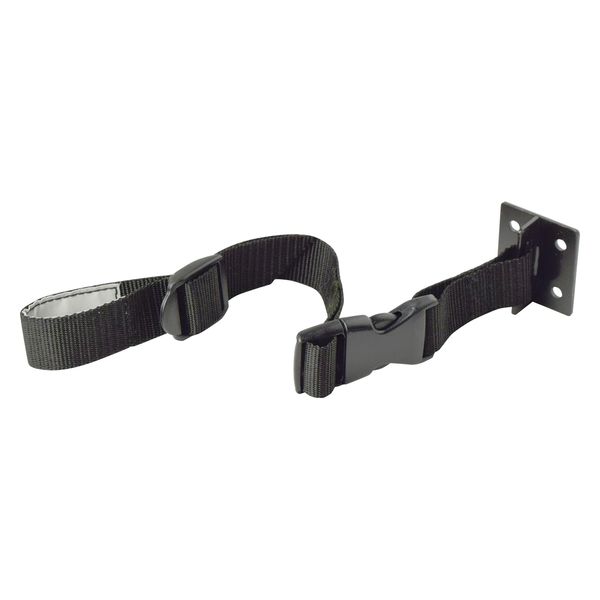 対象物を固定することで、転倒・走り出しを防止。壁面は強力粘着で簡単に取付。ワンタッチ樹脂バックルで取付・取外簡単。巻き付け内側にすべり止め加工がありズレ落ちしにくい。