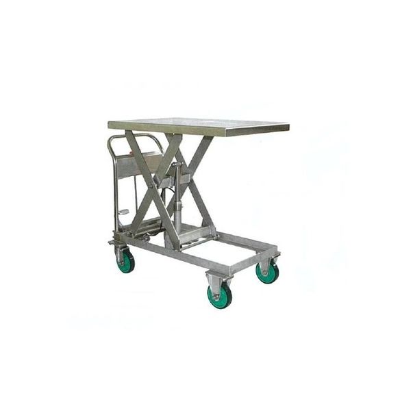 | 商品の特徴 | ●SUS306を使用。水に強く、色々な環境下にも抜群の耐久性を発揮します。●タイプオールステンレス積載荷重(kg)500テーブル寸法W(mm)600テーブル寸法L(mm)900ストロークST(mm)600テーブル高さH(mm)330テーブル高さH1(mm)930全長LL(mm)1130車輪φ150ウレタンペダル回数(早送り)ーペダル回数(標準)58自重(kg)80 | ||