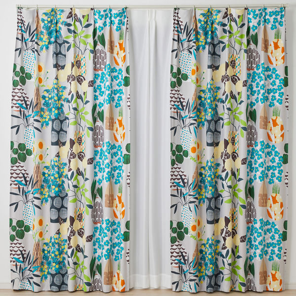 スミノエ デザインライフ セミオーダー カーテン フラワーポット 1400×1200mm グレー 1セット(2枚入)(直送品)