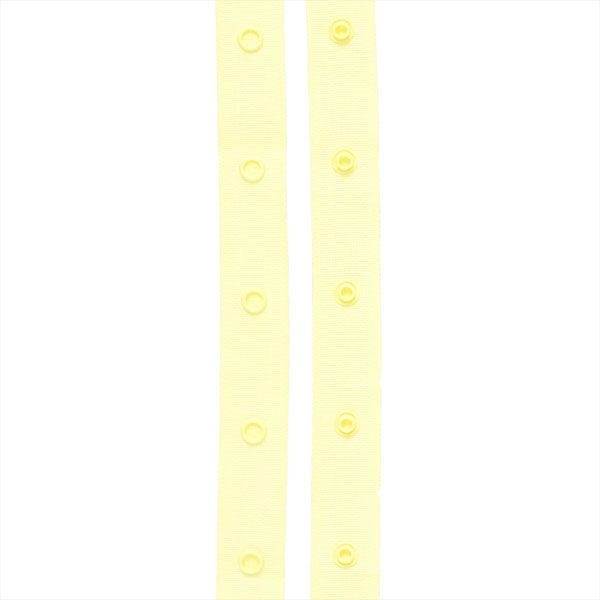 | 商品の特徴 | ニット調テープに薄型スナップがついたテープスナップ。金属アレルギーの方にもやさしいプラスチック製のスナップです。エコテックス認証商品。 | ||