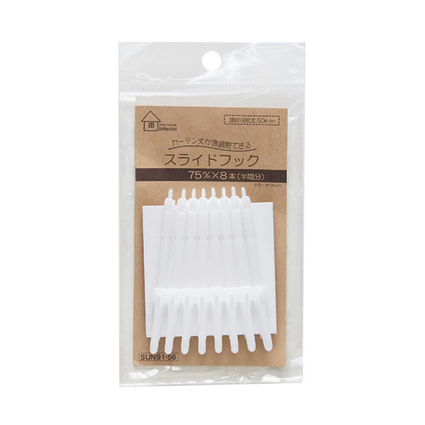 | 商品の特徴 | 50mmの長さ調節ができるスライドフック。微妙なカーテン丈の調節で美しいカーテンに仕上がります。A・Bフック兼用です。Aフック…天井付けやレースカーテンなどレールが見える仕様Bフック…正面付けや厚地カーテンなどレールを隠す仕様 | ||