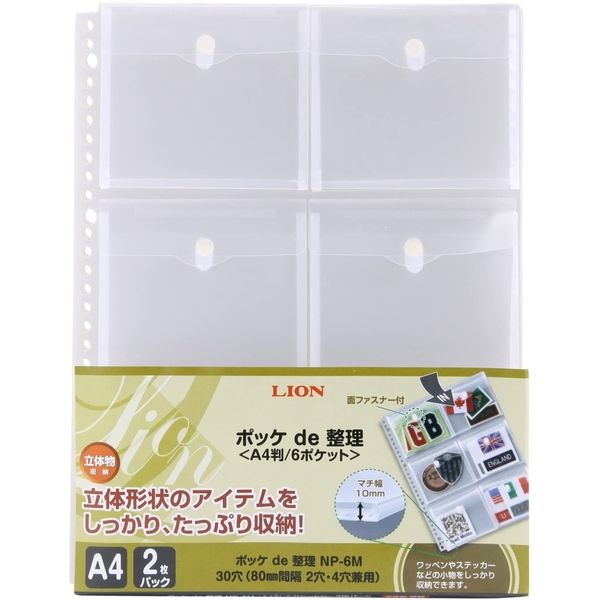 本商品:ライオン事務器 ポッケde整理 A4 マチ付 30穴 NP-6M 14734 1セット(2枚) |