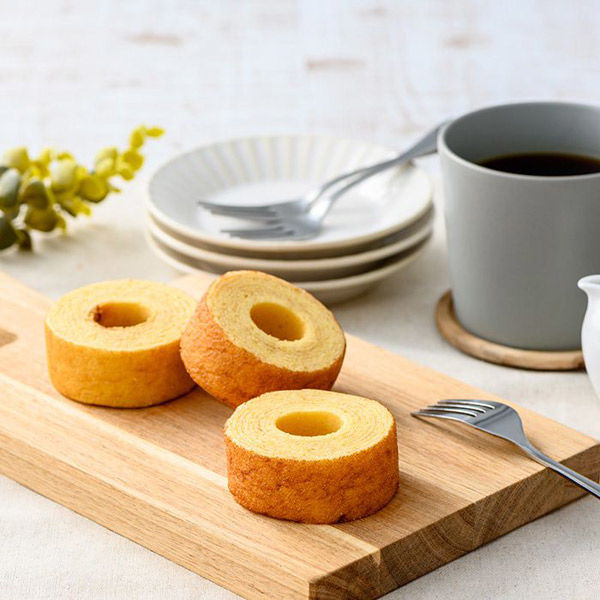 | 寸法 | 幅90mm×奥行き90mm×高さ130mm | 内容量 | しっとりバームクーヘン×3個 |