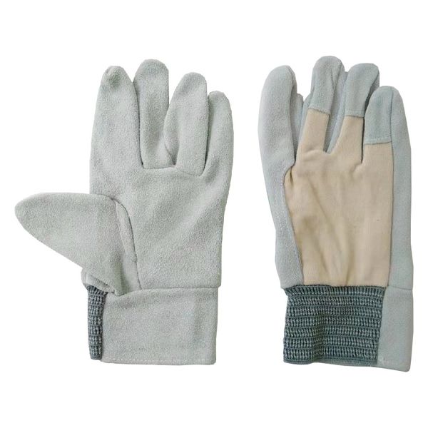耐久性に優れた牛床革を使用した作業用手袋。甲部分がメリヤス生地で通気性がよく柔らかなつけ心地。手首ゴム入りでフィット感がアップ。