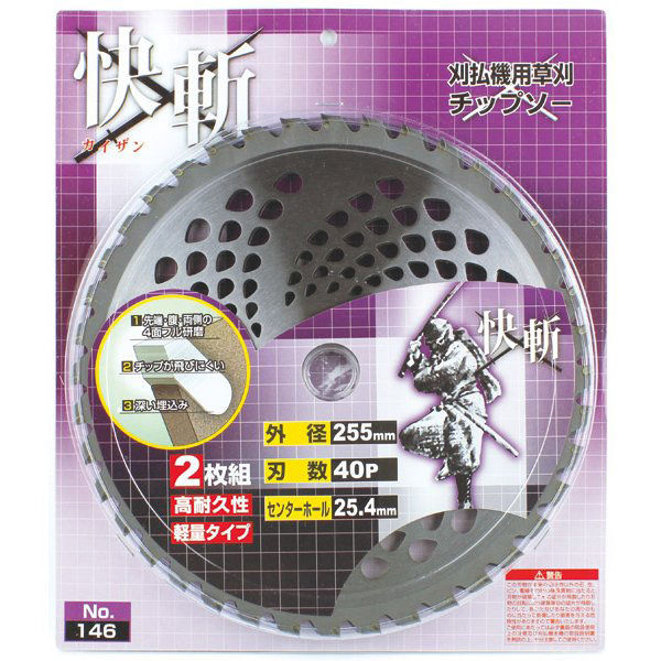 | 商品の特徴 | 深い埋込みにすることによりチップ飛びを軽減。一般草刈用。 | ||