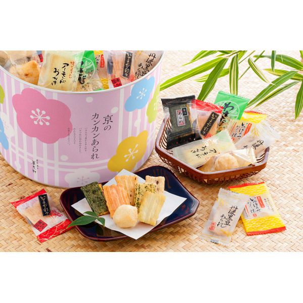 | 商品の特徴 | 和をイメージしたかわいいバケツ缶に、一口サイズのあられをいっぱい詰め込みました。ご家族、ご友人で楽しめるにぎやかなギフトです。 | ||