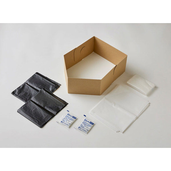 | 材質 | 簡易便器枠:段ボールトイレ用袋・処理用袋:ポリエチレンポケットティッシュ:パルプ | 単品重量 | 約115g |