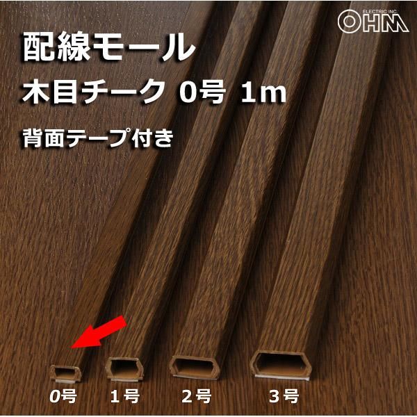 オーム電機 配線モール 0号 木目 チーク 1m テープ付き DZ-MMT01-TK 1個