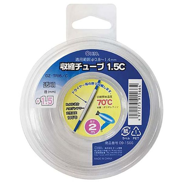 オーム電機 収縮チューブφ1.5mm 2m透明 DZ-TR15/C