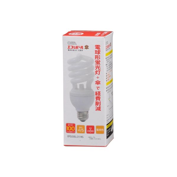オーム電機 エコなボール 傘 交換球 電球形蛍光灯 E26 スパイラル形 10 EFD25EL/21/KS 1個
