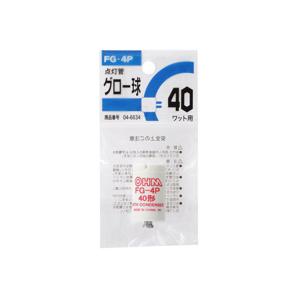 オーム電機 点灯管 グロー球 40W用 FG-4P 1P