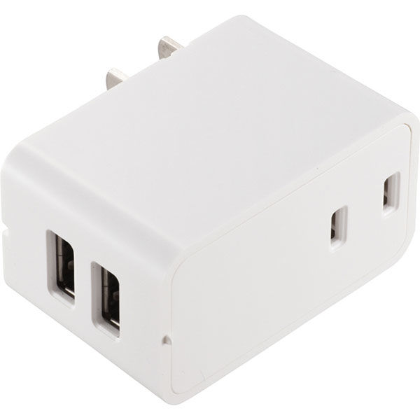 | 商品の特徴 | 【 特 長 】● ACコンセント付きUSBチャージャー● USB充電ポート2口【 仕 様 】■ 入力:AC100V 50/60Hz■ 出力:DC5Vx2ポート■ 電流容量:2400mA(合計)■ 外形寸法:(約)幅60×高さ33×奥行56mm(プラグ含む)■ 質量:(約)65g※ 別途対応したUSBケーブルが必要です。(純正品を推奨します。 | ||