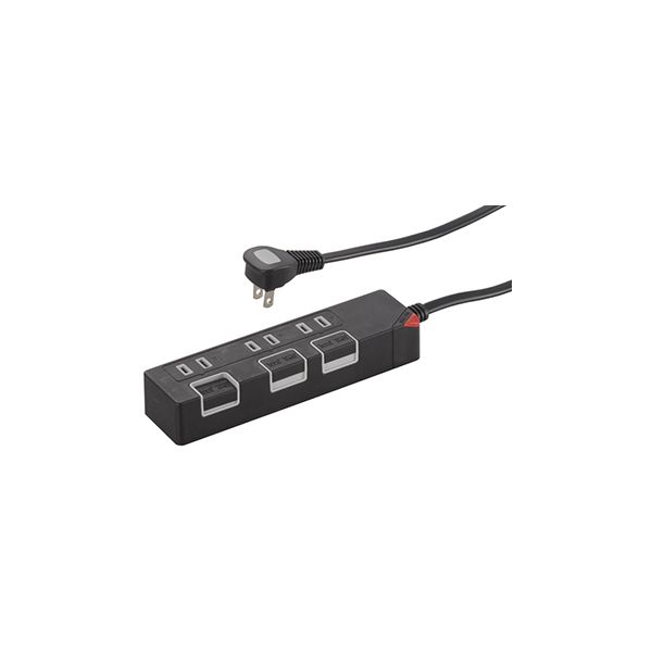 | カラー | ブラック | その他1 | ● ランプのない押しボタンを搭載。凹凸でオン/オフを見分けて、 スイッチランプに使われる消費電力もカット!さらに節電できます。● 二重被ふくコード 導線を二重被ふくで強度を向上、より丈夫で安全になりました。● 絶縁カバー トラッキング火災や感電を防 |