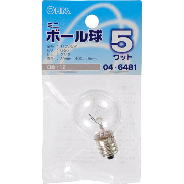 本商品:オーム電機 ミニボール球 G30型 E12/5W クリア LB-G3205-C 1個