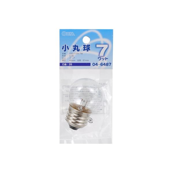 オーム電機 白熱電球 ミニボール球 G40 E26 クリア 7W 61mm OHM LB-G4607-C 1個