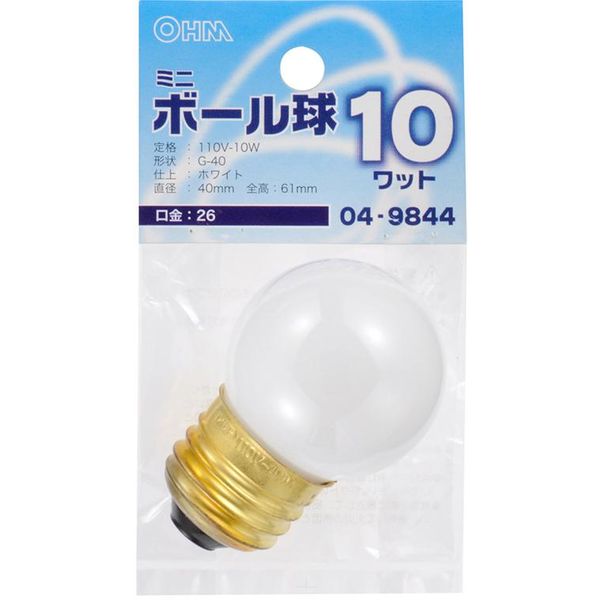 オーム電機 白熱電球 ミニボール球 G40 E26 ホワイト 10W 61mm LB-G4610-W 1個