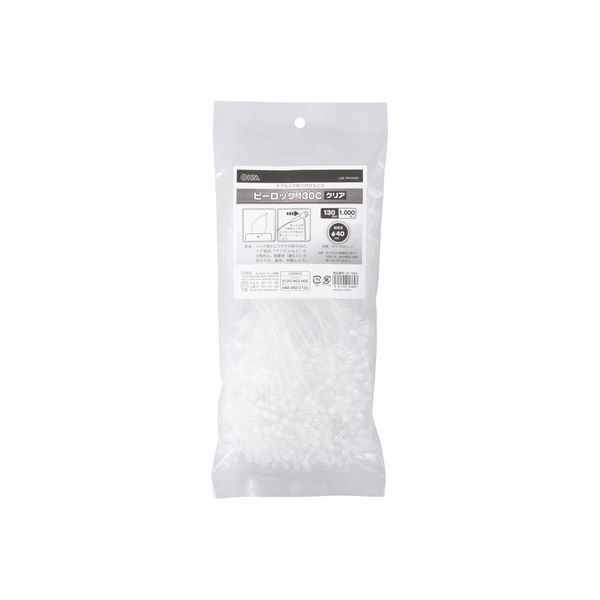 オーム電機 結束バンド ロックタイ ピーロック 130mm クリア 透明 LOB-PR13100C 1個(1000本)