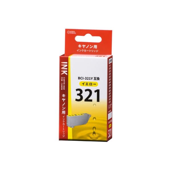オーム電機 キヤノン BCI-321Y対応 互換インクカートリッジ イエロー INK-C321B-Y 1個