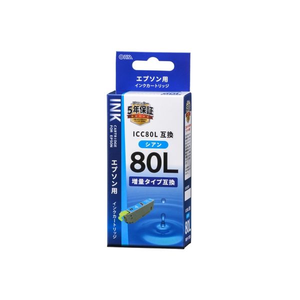 オーム電機 エプソン互換インク ICC80L対応 シアン INK-E80LB-C 1個