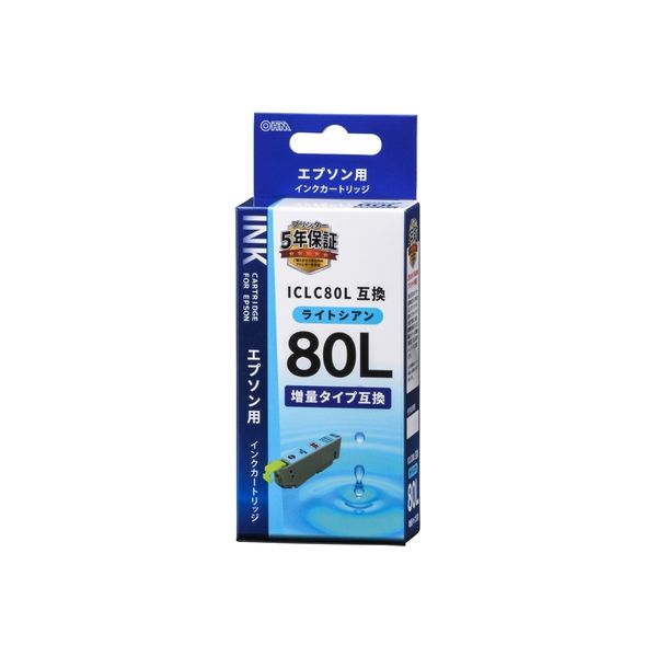 オーム電機 エプソン ICLC80L対応 互換インクカートリッジ ライトシアン INK-E80LB-LC 1個