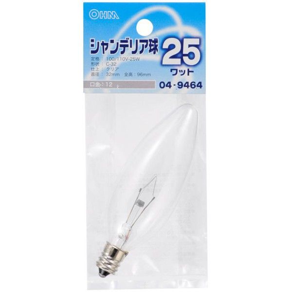 オーム電機 シャンデリア球E12 25Wクリア LB-C2225-C 1個