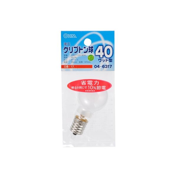 オーム電機 ミニクリプトン電球 E17 40W形 ホワイト OHM LB-PS3740K-W 1個