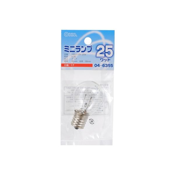 オーム電機 白熱電球 ミニランプ E17 25W クリア OHM LB-S3725-C 1個