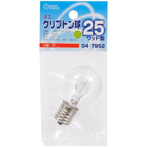 オーム電機 ミニクリプトン電球 E17 25W形 クリア OHM LB-S3725K-C 1個