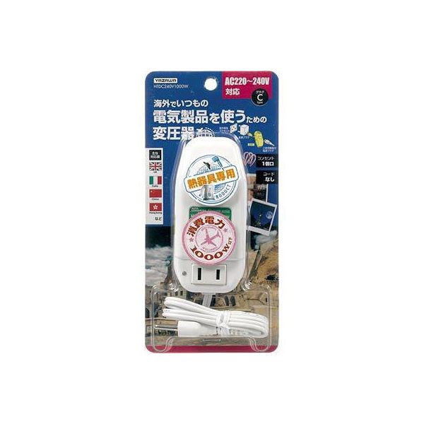 海外旅行用変圧器240V1000W コード付き HTDC240V1000W ヤザワコーポレーション(直送品)
