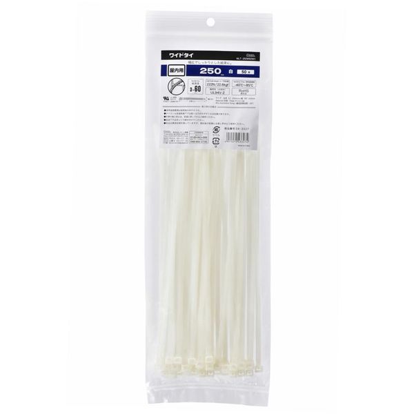 オーム電機 結束バンド 幅広ロックタイ 250mm 白 50本入り OHM WLT-250W50WH 1パック(50本)