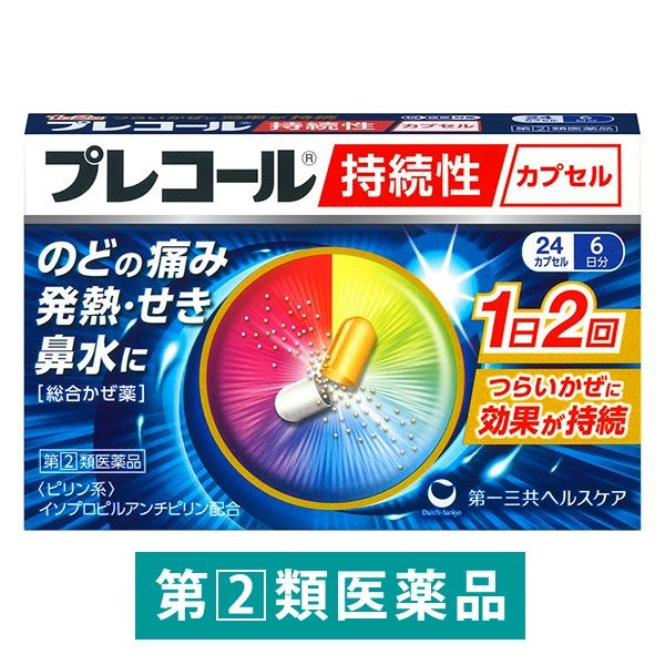 プレコール持続性カプセル 24カプセル 第一三共ヘルスケア 風邪薬 のどの痛み 発熱 鼻水 せき【指定第2類医薬品】