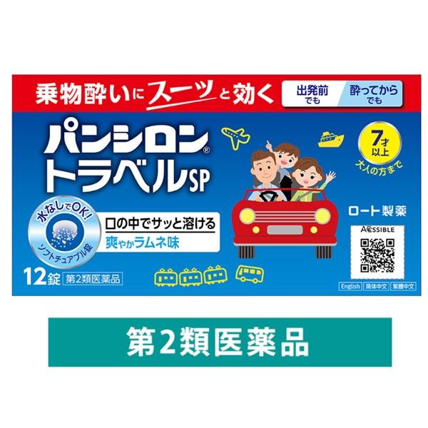 パンシロントラベルSP 12錠 ロート製薬 乗り物酔い止め 水なしで飲める 酔ってからでも効く【第2類医薬品】