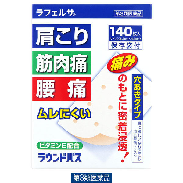 ラフェルサ ラウンドパス 140枚 大協薬品工業 貼り薬 プラスター剤 穴あきタイプ ムレにくい 肩こり 筋肉痛 腰痛【第3類医薬品】