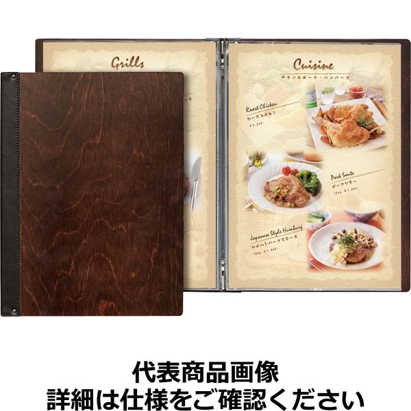| 商品の特徴 | 280×380(B4・ビニール付4ページ)(ビニール-68)材質:木製・隠しメニューピン仕様 | ||
