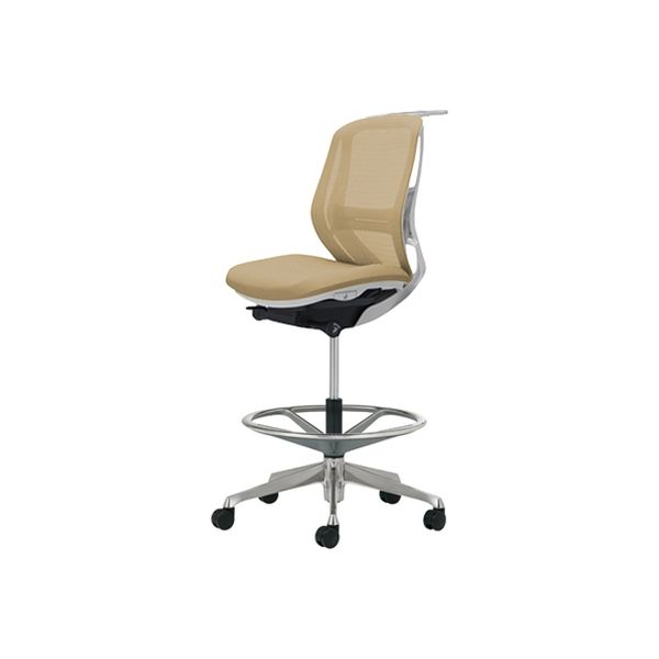 C632HZ FMP7|オカムラ シルフィー ハイチェア ロー メッシュ 白ボディ アルミ脚 ハンガー付 ランバー付 肘無し ベージュ 1脚(直送品)