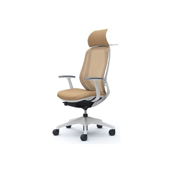 C64BXW FMP7|オカムラ シルフィー EXハイバック メッシュ 白ボディ 白脚 ハンガー付 固定肘 ベージュ 1脚(直送品)