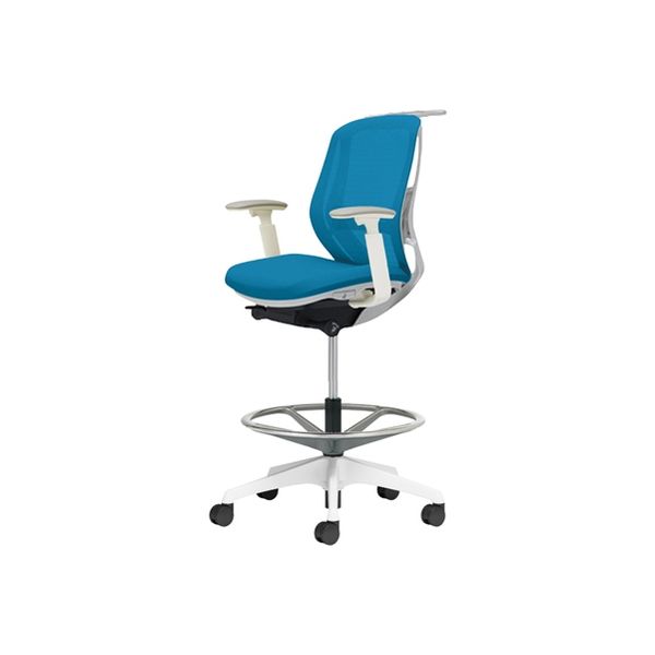 C682JZ FMR6|オカムラ シルフィー ハイチェア ロー メッシュ 白ボディ 白脚 ハンガー付 ランバー付 可動肘 ブルーグリーン 1脚(直送品)