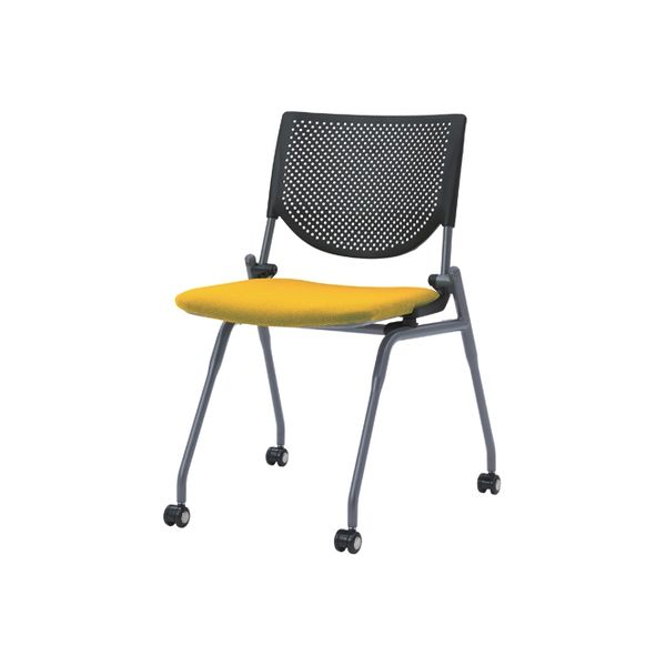 プラス 会議椅子 チェダーC キャスター脚タイプ 背クッション 肘なし ブラックシェル カナリアイエロー MC-W62S CYE 1脚(直送品)