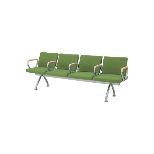 オカムラ フローザ 4人用イス(各席肘付) オリーブグリーン 2175幅×545奥行×430座高×780高さ(mm) LB20BZ PB28(直送品)