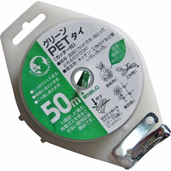 コンパル グリーンPETタイ カッター付 50m 73623 1個