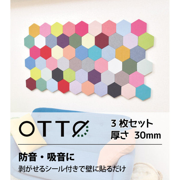 OTTOはデザイン性のある新しい吸音材です。空間に彩りを与え、音に関する悩みも解消する商品です。剥がせるシール付きで壁に貼るだけなので、簡単にお使い頂けます。