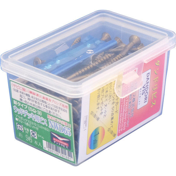 | 備考 | 【返品について】お客様のご都合による返品はお受けできません。●施工上の注意 ウッドデッキ材用ビスを使用する際は、必ず目安表に合った下穴と座掘りを開けるようにしてください。下穴と座掘りがない場合、取り付け中にねじ部が折れてしまう場合があります。 | ||