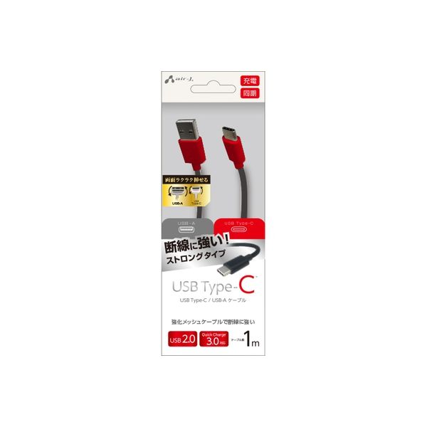 エアージェイ TYPE-C USBストロングケーブル 1M RB UCJ-STG100 RB 2個(直送品)