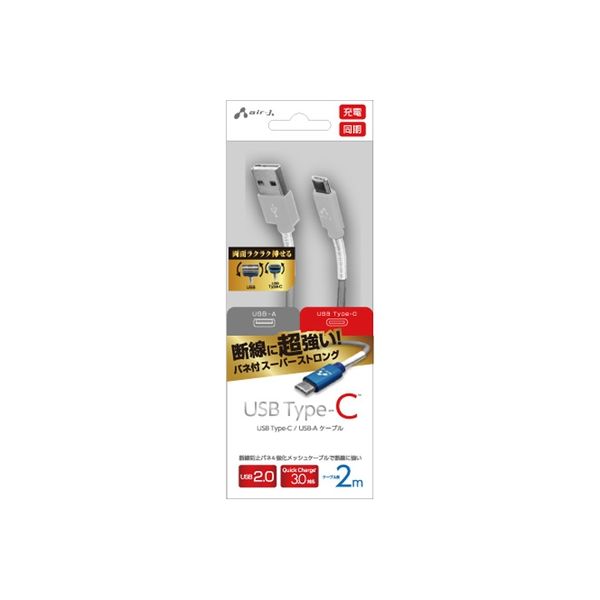 エアージェイ TYPE-C スーパーストロングケーブルバネ付き2m UKJ-CSG200 SL 2個(直送品)