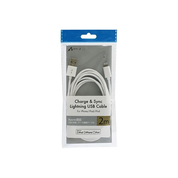 | 商品の特徴 | 定番機能は押さえ、環境に優しい簡易パッケージを採用したMFi認証Lightningケーブル。 アップル社認証「Made for iPhone」を取得し、MFI認定の性能基準を満たしているので、安心・安全にご使用頂けます。 | ||