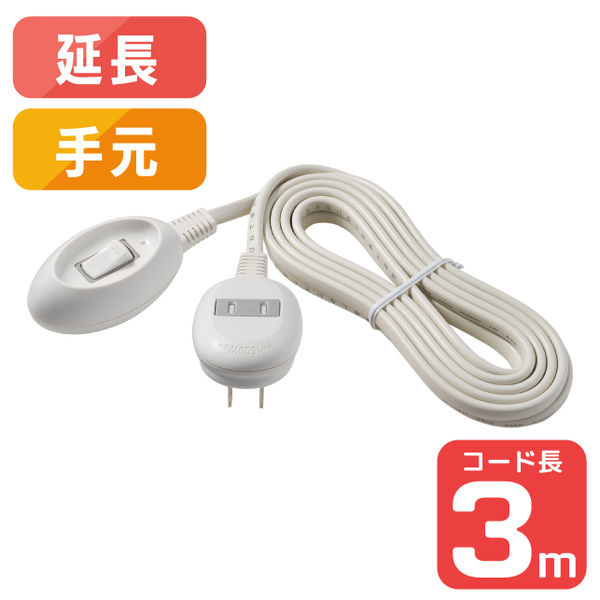 朝日電器 手元スイッチコード3M WTS-300B(W) 1個