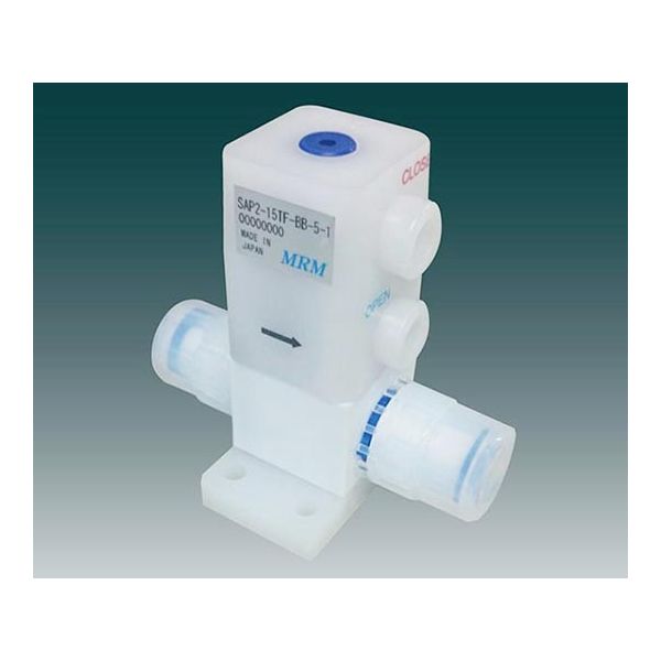 | 接液部材質 | ダイアフラムPTFE、ボディPTFE | 流体圧力 | 単動式→IN→OUT 0~0.3Mpa |