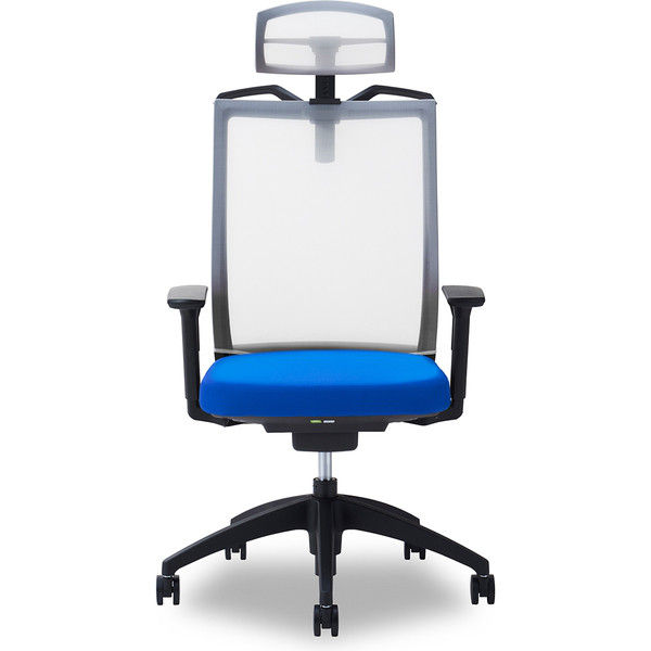 【軒先渡し】関家具 オフィスチェア A01-S-ヘッドWH/ハンガー有/背WH/肘可動/座BL ブルー 238391 1脚(直送品)