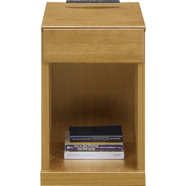 | 商品の特徴 | 天板、前板はラバーウッド無垢材を使用しています。USB付き2口コンセントとティッシュ収納が特徴です。 | ||
